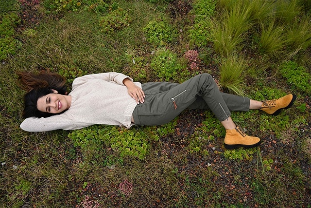 Halt, da fehlt doch noch was? Richtig! Die passenden Schuhe. Natürlich können Sie zu diesen sportlich-lässigen Looks Sneaker stylen. Hier empfehlen sich leichte Chunky Sneaker in hellen Farben. Am besten in der Grundfarbe Weiß im Mix mit sand- und/oder khakifarbene Applikationen, damit der Look schön stimmig wird. Extra-Tipp: Zweifarbige Schnürsenkel, wie man sie von Wanderschuhen kennt, erhöhen den Modegrad. Eine schöne Alternative sind bequeme, ungefütterte Booties zum Schnüren. Etwas höhere Schäfte, softes Veloursleder und warme Farben wie Camel, Karamell, Schilf oder auch ein helles Taupe ergänzen die von der Natur inspirierten Looks perfekt.